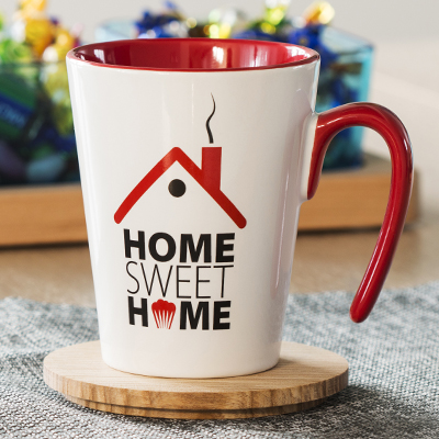 Kubek reklamowy wyróżniający się zastosowaniem innowacyjnego uchwytu z tylko jednym punktem zaczepienia. Uchwyt oraz wnętrze dostępne w kilku wersjach kolorystycznych.
