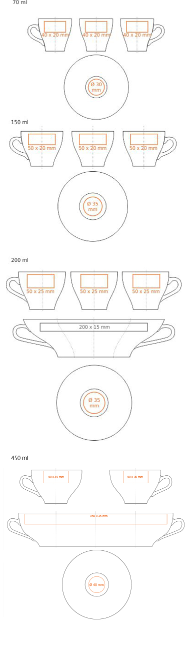 Dostępne techniki zdobienia dla produktu VENEZIA SET: *  (70 / 150 / 200 / 450 ml)
