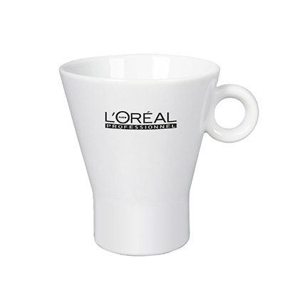 Rozszerzający się ku górze porcelanowy kubek reklamowy z małym, okrągłym uchwytem. Produkt jest końcówką serii, mogą na nim występować nakłucia, kropki oraz różnice w odcieniu szkliwa.