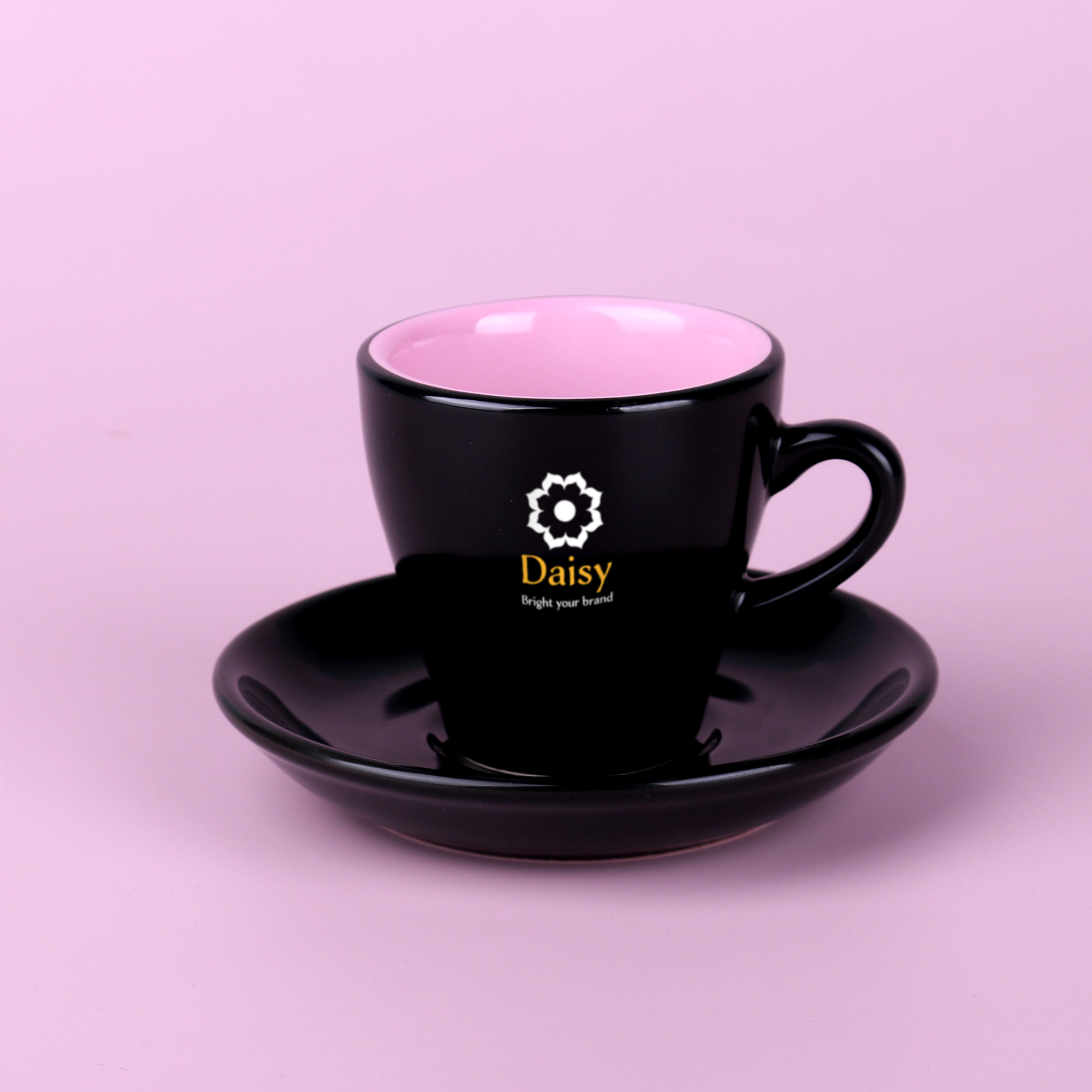 Mocna fuzja dla idealnego espresso. Modny i charakterystyczny zestaw do espresso. Filiżanka z białym wnętrzem, wyróżni markę i wyniesie ją na szczyt.