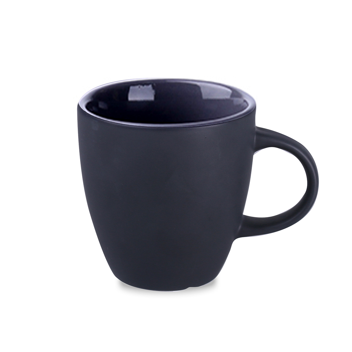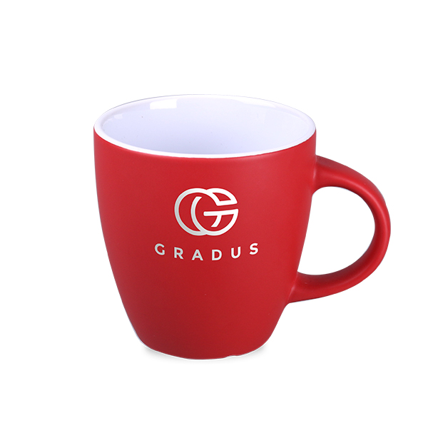 Matowy kubek w modnej kolorystyce. Wcięcia w podstawie kubka służą odprowadzaniu ciepła, dzięki temu nie pozostawia on nieestetycznych śladów na meblach.